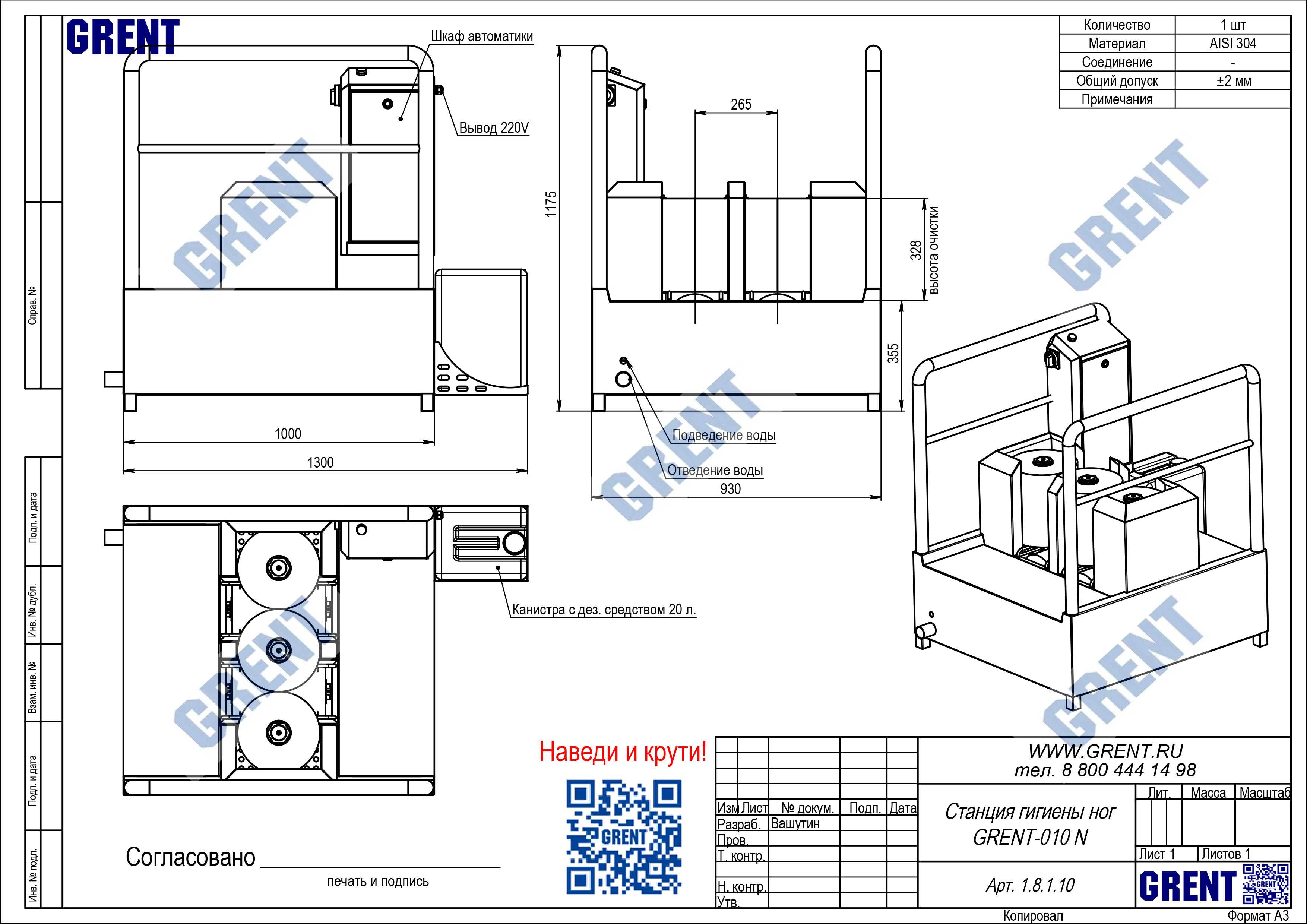 Станция гигиены обуви GRENT-010 N предназначена для дезинфекции подошв обуви персонала перед выходом (входом) из чистой зоны.