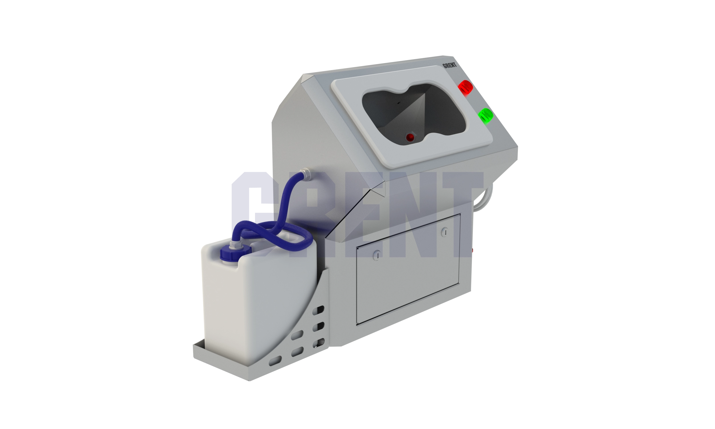Станция гигиены рук GRENT 015 R предназначена для автоматической бесконтактной дезинфекции кистей рук персонала перед входом в чистую зону. Включение подачи дезинфицирующего средства происходит при поднесении обеих рук в зону срабатывания фотоэлементов, расположенных в дезинфицирующей камере. Дезинфицирующее средство подается автоматически при помощи электронасоса.