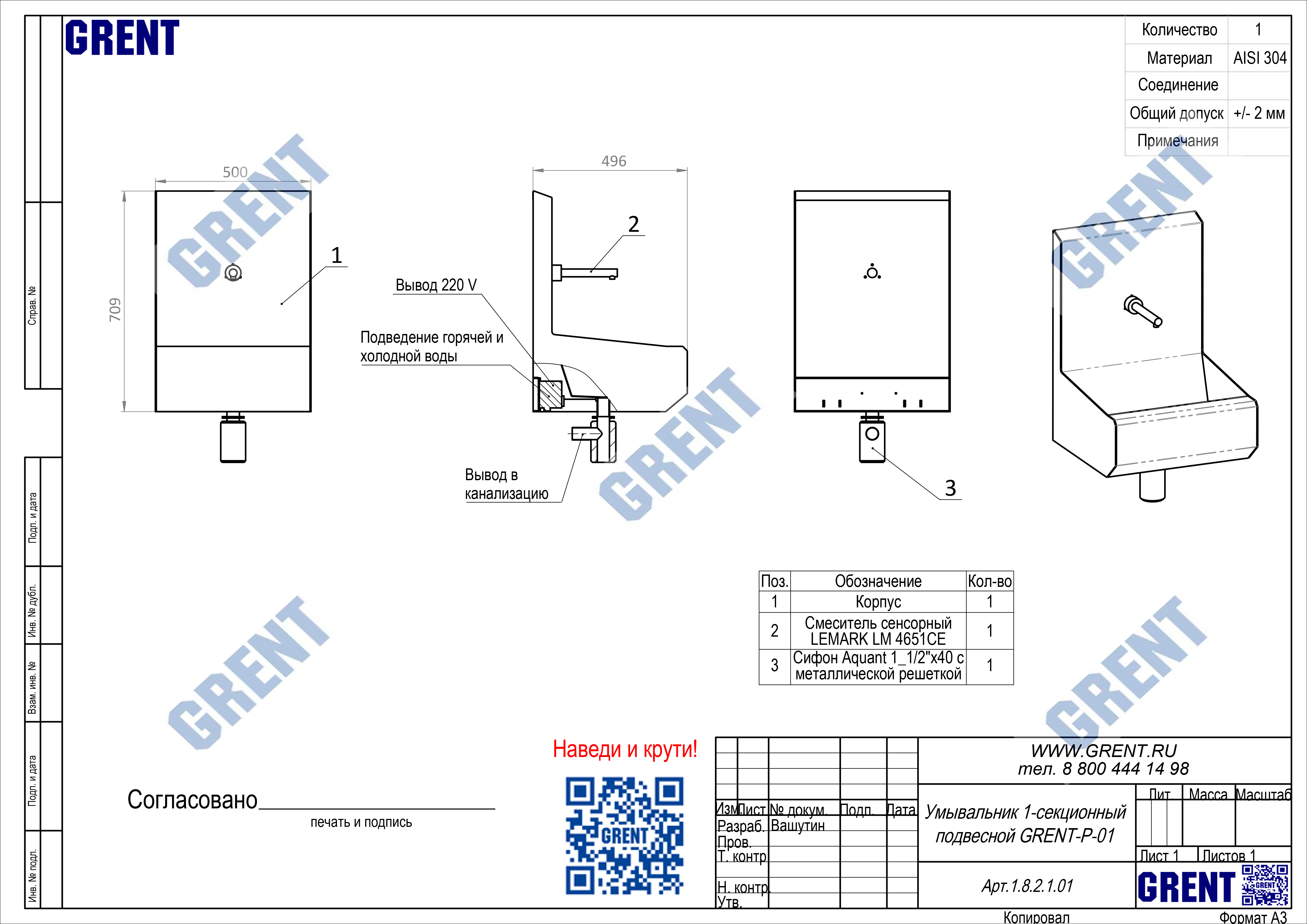 Одно секционный умывальник GRENT-P-01 используется для бесконтактной мойки рук персонала преимущественно на предприятиях общепита и пищевой промышленности. Активация подачи воды осуществляться фотодатчиком при поднесении рук к смесителю.